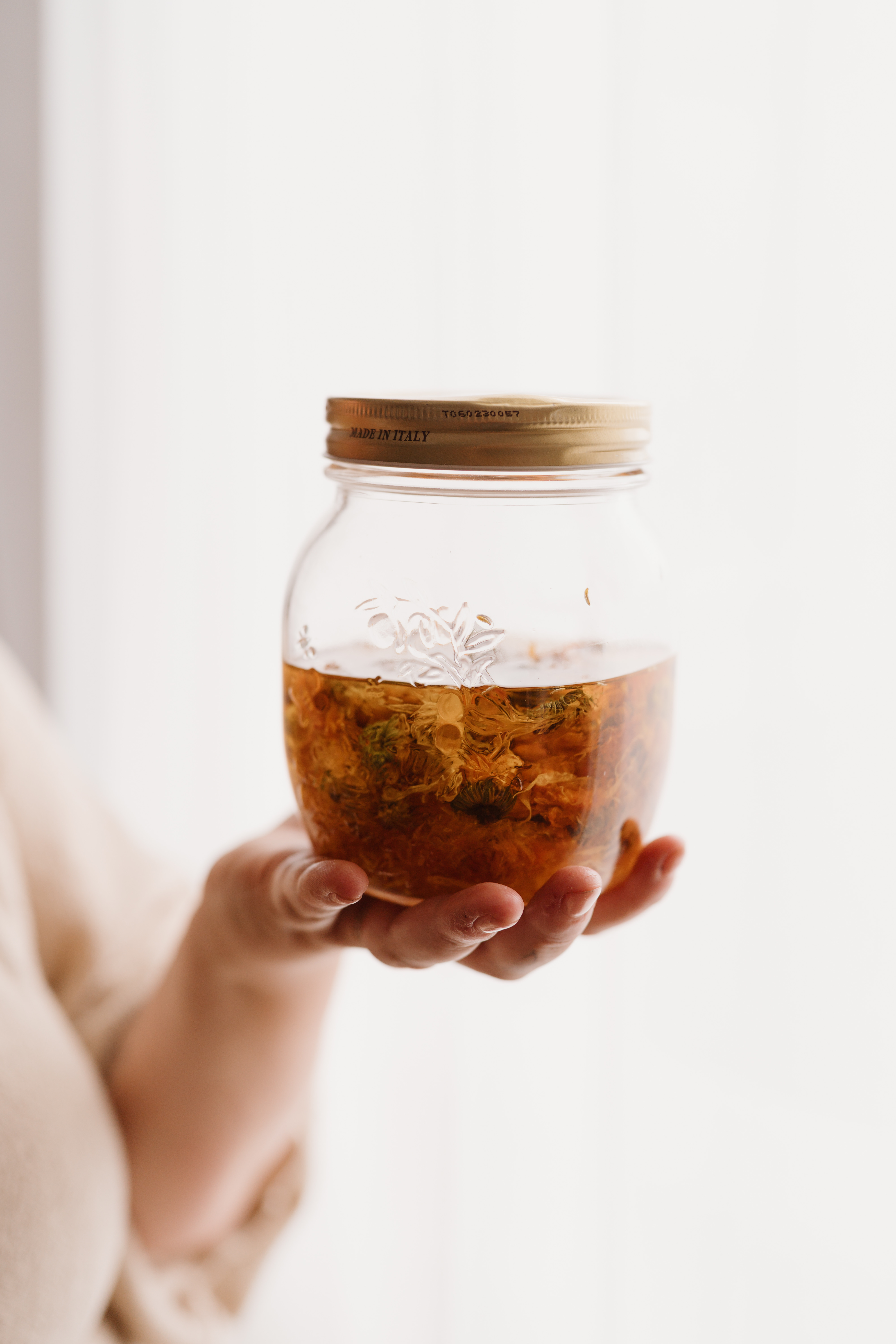 Een maceraat van goudsbloem op basis van amandeolie, sheabutter, zinkoxide, vitamine e, bijenwas en natuurlijk etherische olie van lavendel. Behalve de vitamine e, allemaal te vinden in de webshop van Zonneschijn natuurlijk!
